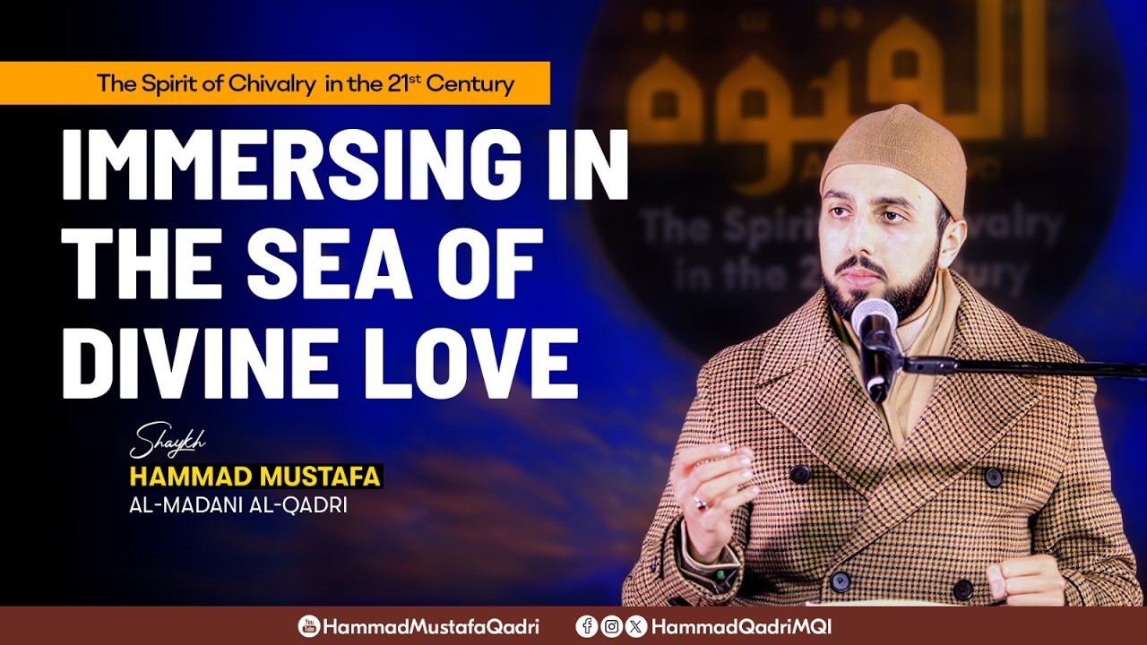 In this lecture, Shaykh Hammad Mustafa al-Madani al-Qadri explores the spirit of chivalry (Futuwwa) in the 21st century and the concept of immersing oneself in the sea of Divine love. He explains that true chivalry is not merely physical bravery, but a noble character built upon selflessness, humility, service to humanity, moral excellence, and living for the pleasure of Allah. In today’s materialistic and ego-driven world, real strength lies in conquering the ego (nafs) and transforming the heart through the love of Allah. The lecture emphasizes that when a heart is filled with Divine love, it naturally develops patience, compassion, generosity, and sincerity—qualities that define true spiritual chivalry. This video serves as a profound reminder for those seeking spiritual refinement, moral excellence, and a deeper connection with Allah in the modern age.
